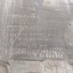 The first hike we did was Capitol Gorge. The highlights of this walk for us were the petroglyphs and the names of pioneers etched into the gorge walls. The history of this walk was super interesting to learn about – especially the fact that this gorge was used as part of a route into the 20th century, when automobiles would drive through the gorge.